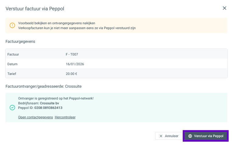 - Stuur de Crossuite rekening(en) van jouw praktijkabonnement over het Peppol netwerk naar jouw eigen administratie